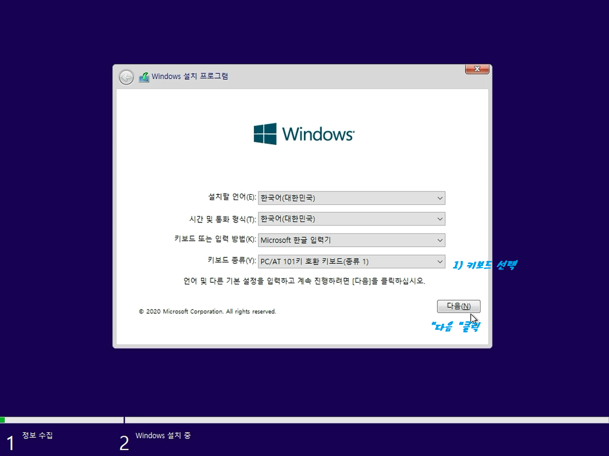 - 1️⃣ 언어 및 키보드 설정 후 다음 클릭